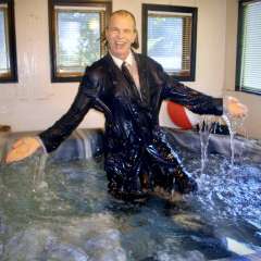 Bsmessybakery chilled in a hot tub full of custard with LeRex